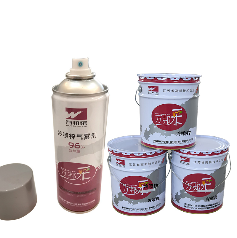 由纯度高于99.99%的锌粉、挥发性溶剂和高分子粘着剂三部分组成的单组分冷喷镀锌产品。